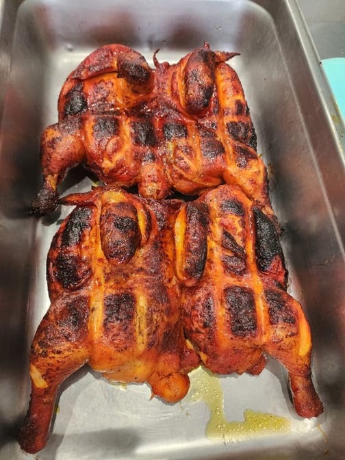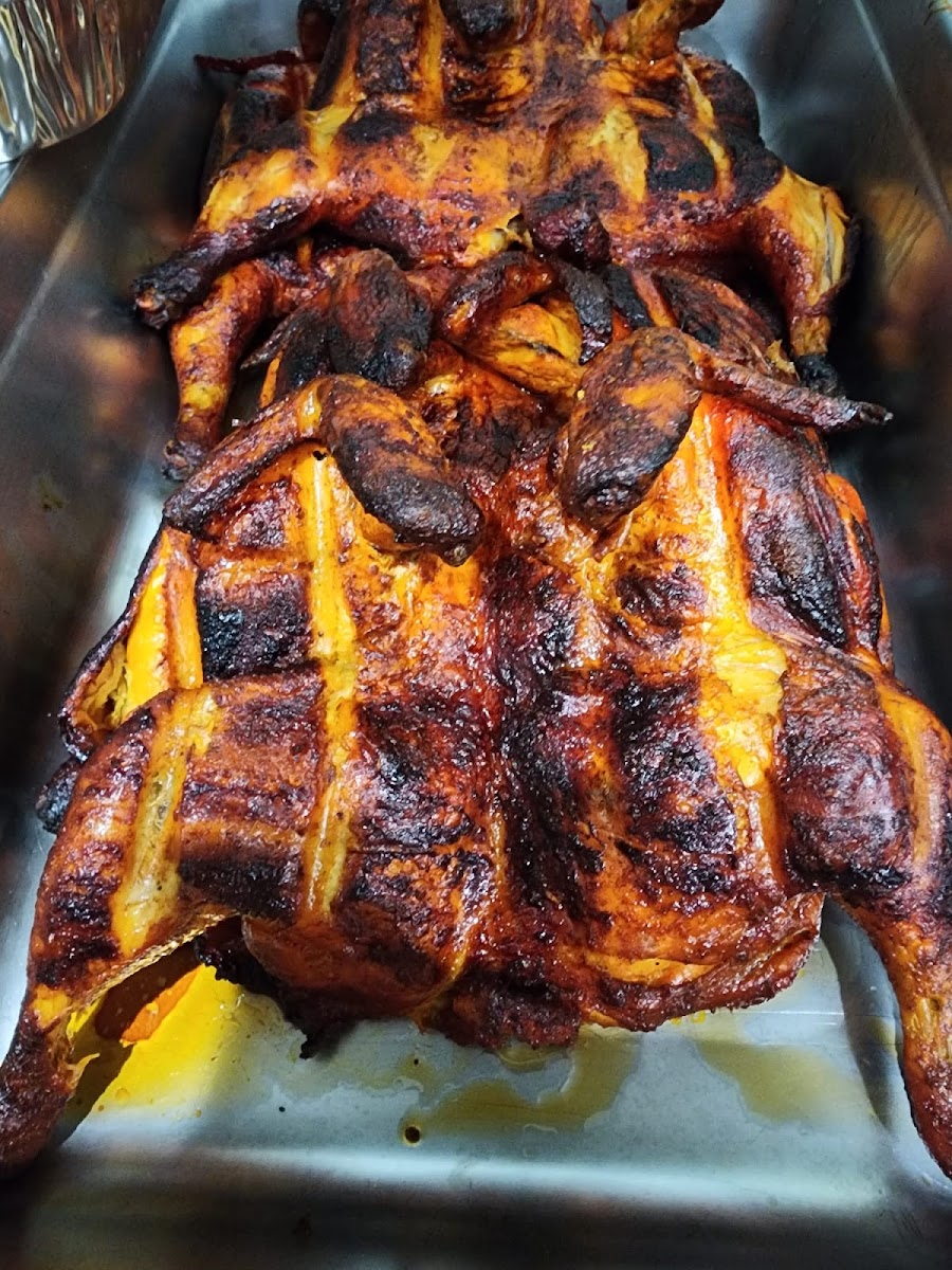 Savor tender and juicy wood-fire grilled whole chicken, brimming with rich smoky flavors and seasoned to perfection.