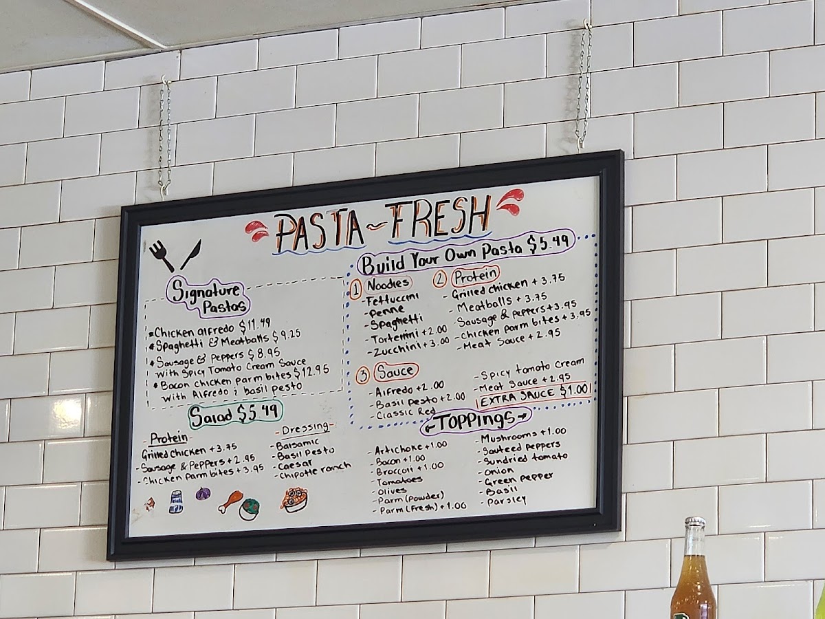 At Pasta Fresh, you'll find a menu that’s all about bold, fresh flavors and classic Italian favorites with a modern twist. From handmade pastas to rich sauces that linger with each bite, every dish is crafted with care and the finest ingredients. Whether you're craving a simple spaghetti with marinara or something more adventurous, like a creamy alfredo with grilled chicken, the options here are designed to satisfy all tastes. The Pasta Fresh Menu features not only traditional favorites but also seasonal specials, ensuring there's always something new to try. Pair your meal with a refreshing drink or a perfectly matched wine, and you're set for a delightful experience. Every dish is a testament to the artistry and passion that goes into authentic Italian cooking.